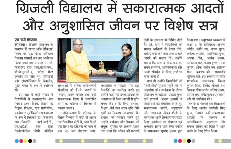Bachpan a unit of Grizzly was awarded as "Best School in Jharkhand"